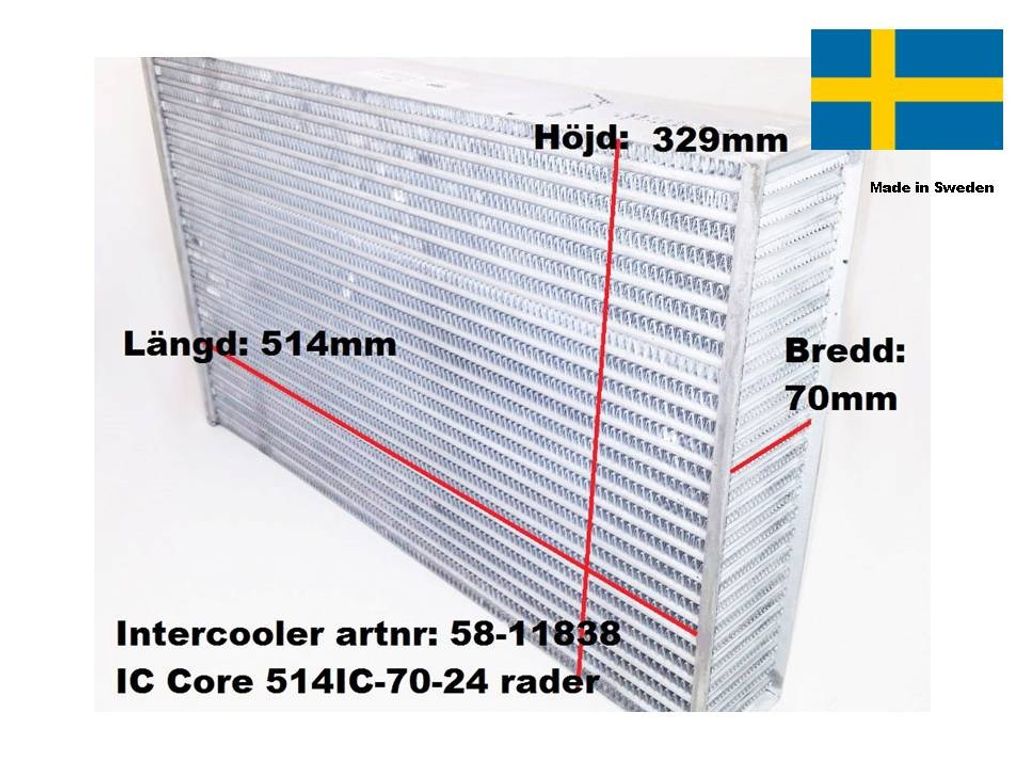 Alla intercoolers är 100 % läckage testade från fabrik. Intercoolern säljs utan gavlar (endast cellpaketet med ram)