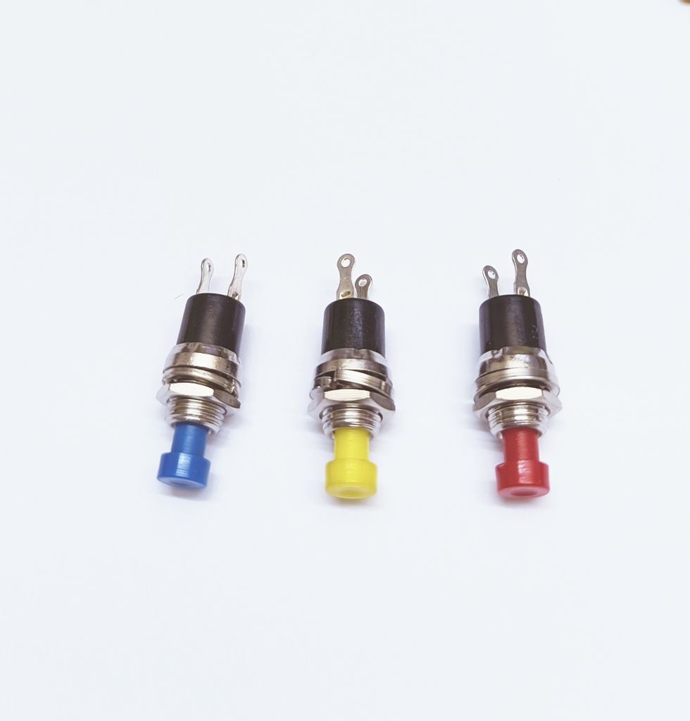 återfjädrande tryckknapp, momentanknapp gul blå, racing knapp, rally elkomponent, motorsport tryckknapp, trendab
