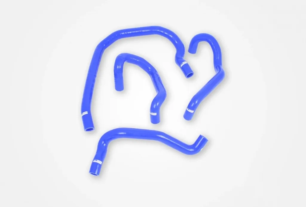 Slangarna är tillverkade av förstklassigt silikon med tre till fem lager textilarmering beroende på innerdiametern. Denna konstruktion ger hög motståndskraft mot tryck, värme och åldrande. Originalslangarna i gummi tappar ofta sin form eller spricker med tiden – detta silikonslangkit är den pålitliga ersättningen som även förbättrar motorrummets utseende.