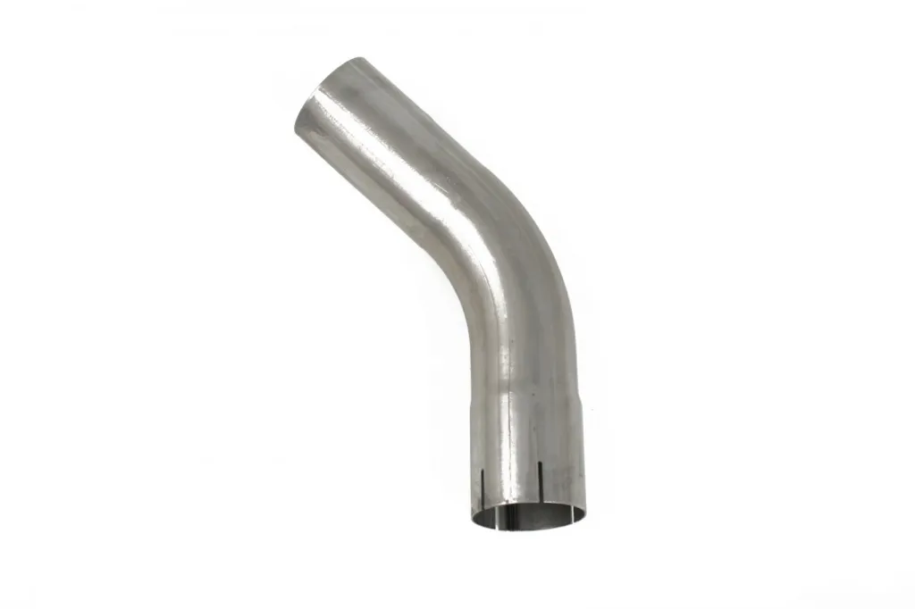Universalavgasrör i 45° vinkel tillverkat av slitstarkt stål – idealiskt för dig som bygger eller modifierar avgassystem på fordon.