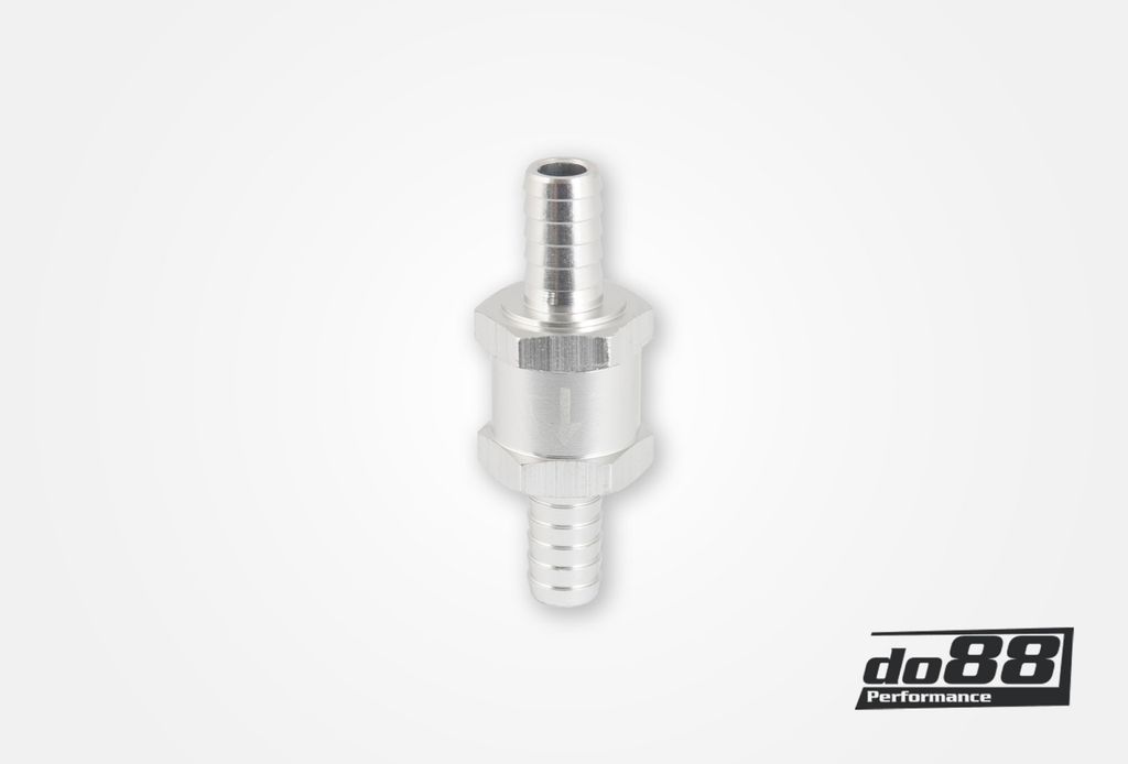 Ventilen är utformad för enkel montering i 6 mm slang och används i en mängd applikationer som vakuumstyrning, bränslesystem, kylsystem och tryckledningar. På ventilens utsida finns en tydlig pil som markerar flödesriktningen, vilket underlättar korrekt installation. Konstruktionen i aluminium ger låg vikt, god korrosionsbeständighet och lång livslängd även under krävande förhållanden.