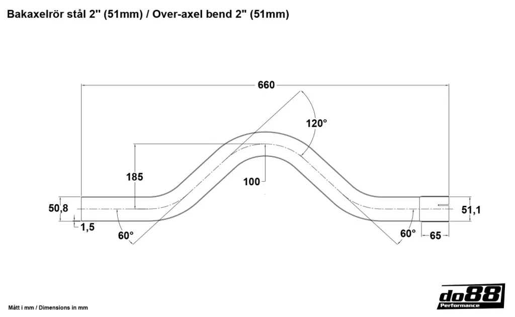 bakaxelrör 2 tum, avgassystem rör stål, 51mm bakaxelrör, universal avgasrör, rör med muff, stål avgassystem, performance avgasrör, trendab