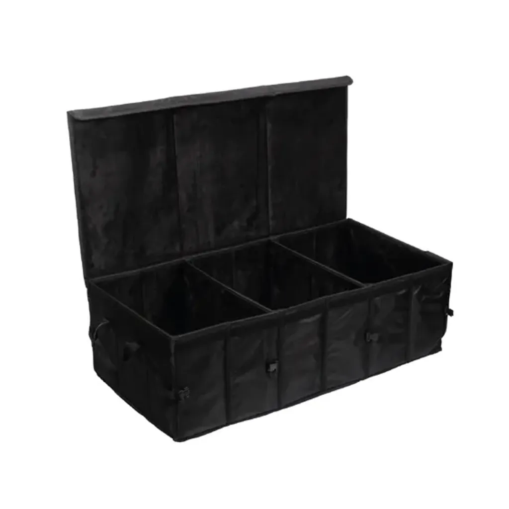 Denna robusta hjälmväska är idealisk för förvaring och transport av flera hjälmar. Med flyttbara avdelare, tålig polyesterkonstruktion och praktiska funktioner som tygöglor för fastsättning och hopfällbar förvaring, får du en väska som är lika flexibel som den är skyddande. Perfekt för paddock, transporter eller förvaring mellan tävlingar.