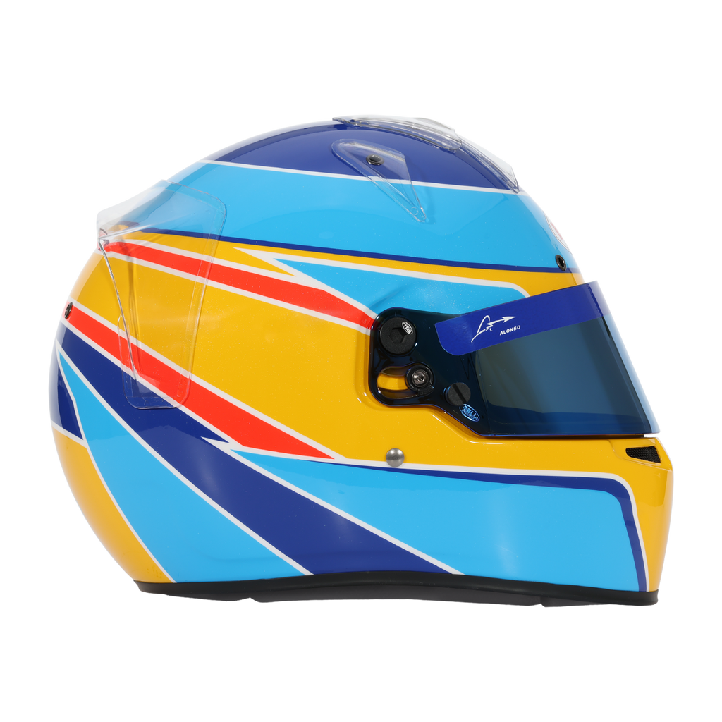 Med en ikonisk grafik baserad på Alonsos F1-hjälm erbjuder denna special edition en ultralätt kolfiberkomposithjälm med SE07 multilagervisir, transparent spoiler och luftintag. Hjälmen är godkänd enligt SNELL-FIA CMR 2016, vilket gör den anpassad för kartingförare under 18 år. Levereras komplett med Bell HP-hjälmväska för säker transport och förvaring.
