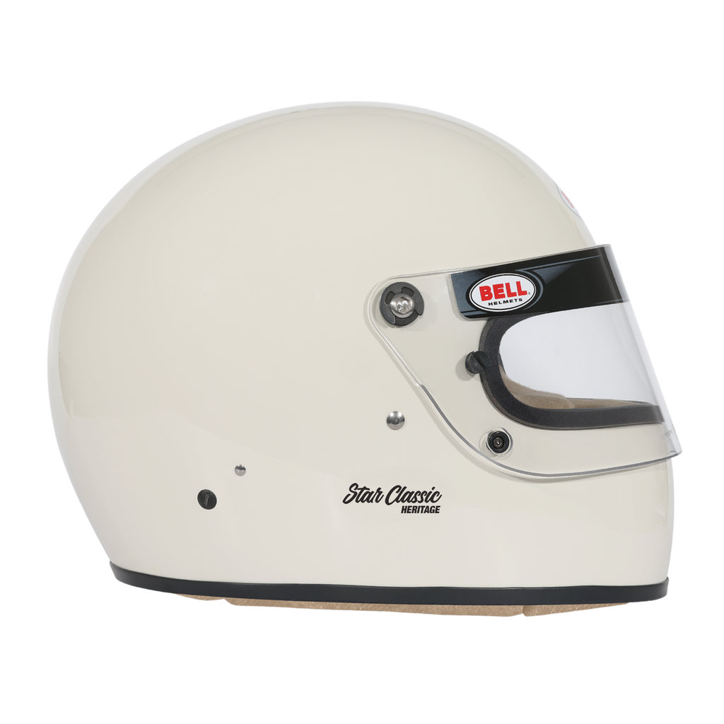 Bell STAR CLASSIC är en retrohjälm i 70-talsstil med modern kompositkonstruktion och FIA/SNELL-godkännande – perfekt för historisk racing och entusiaster.