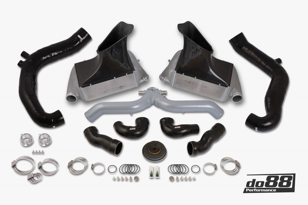 Paketet kombinerar två högeffektiva intercoolers med ett flödesoptimerat Y-rör i aluminium samt specialdesignade silikonslangar. Konstruktionen sänker inloppstemperaturen markant och ger upp till 37 % högre luftflöde än originalsystemet. Resultatet blir lägre mottryck, bättre syretillförsel och högre effektpotential. Alla komponenter är tillverkade i material av högsta kvalitet med exakt passform och lång livslängd.