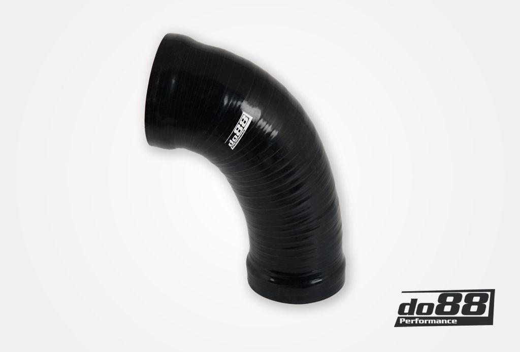 Slangen är tillverkad i flerskiktsarmerat silikon med integrerad stålwire som förhindrar hopdragning vid högt undertryck. Konstruktionen har tre till fem lager armering beroende på innerdiameter och position. Originalets gummislang kan med tiden spricka eller deformeras – denna uppgradering ger en hållbar, trycktålig och visuellt tilltalande lösning. Svart utförande för ett stilrent och originalnära utseende.