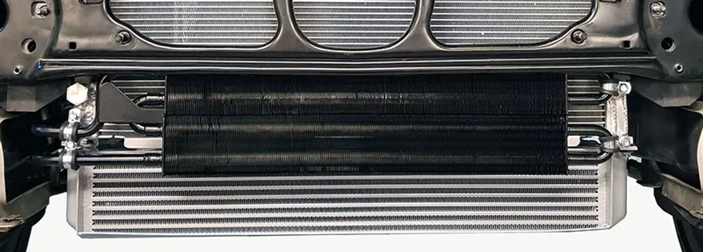 Observera att endast själva kylaren ingår – oljeslangar tillverkas separat efter önskad installation. Se produktbilder för exempel på montering tillsammans med prestandakylaren för BMW M3 E46.
