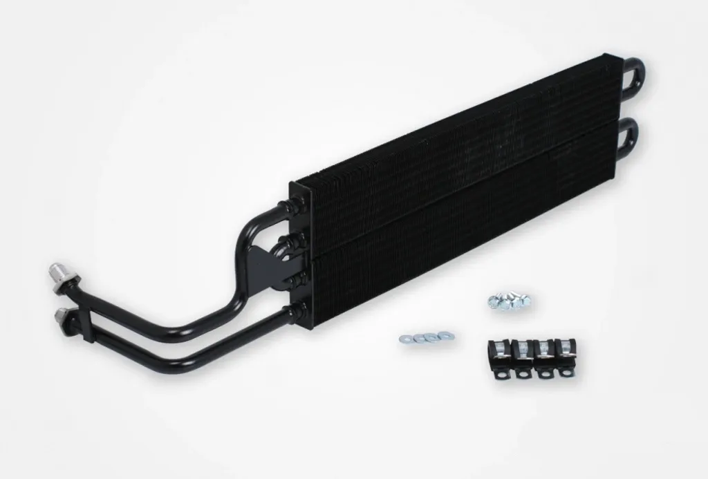 Denna hjälpkylare är framtagen för att monteras direkt mot den främre delen av huvudkylaren och passar perfekt i befintligt utrymme. Konstruktionen har två AN6-anslutningar (hane) och levereras med gummibeklädda p-klämmor och skruvar för säker och vibrationsfri montering. Tack vare sin kompakta design och höga kylkapacitet är den idealisk för extra kylning av servoolja eller växellådsolja vid hård körning.