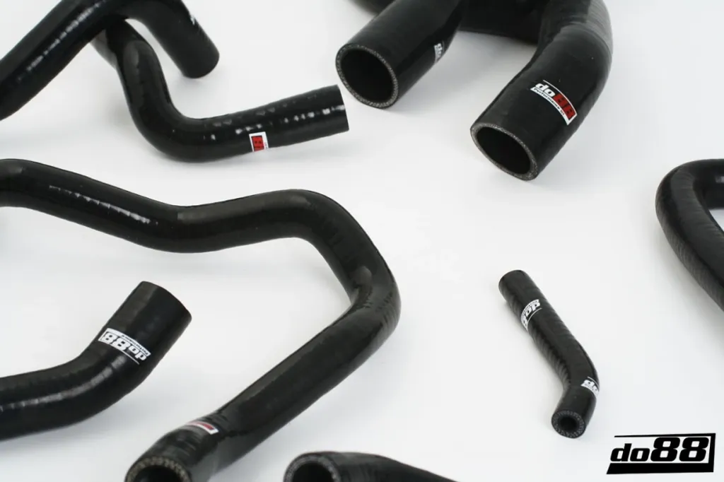 De ursprungliga gummislangarna i kylsystemet slits med tiden och riskerar att spricka under värme och tryck. Detta slangkit i silikon erbjuder lång livslängd och bibehållen elasticitet även vid höga temperaturer. Konstruktionen med tre till fem lager armering säkerställer stabilitet och motståndskraft mot tryckvariationer. En perfekt uppgradering för den som vill ha både förbättrad driftsäkerhet och ett snyggt motorrum.