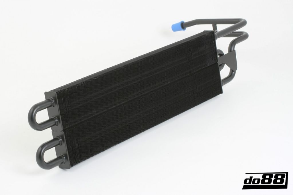 Konstruktionen ger markant förbättrad kylkapacitet och stabilare styrrespons även under långvarig belastning. Kylaren är tillverkad i aluminium med CNC-bearbetade fästen och anslutningar för bästa passform, hållbarhet och flöde. Monteras direkt i bilens originalinfästningar och fungerar med befintliga oljeledningar.