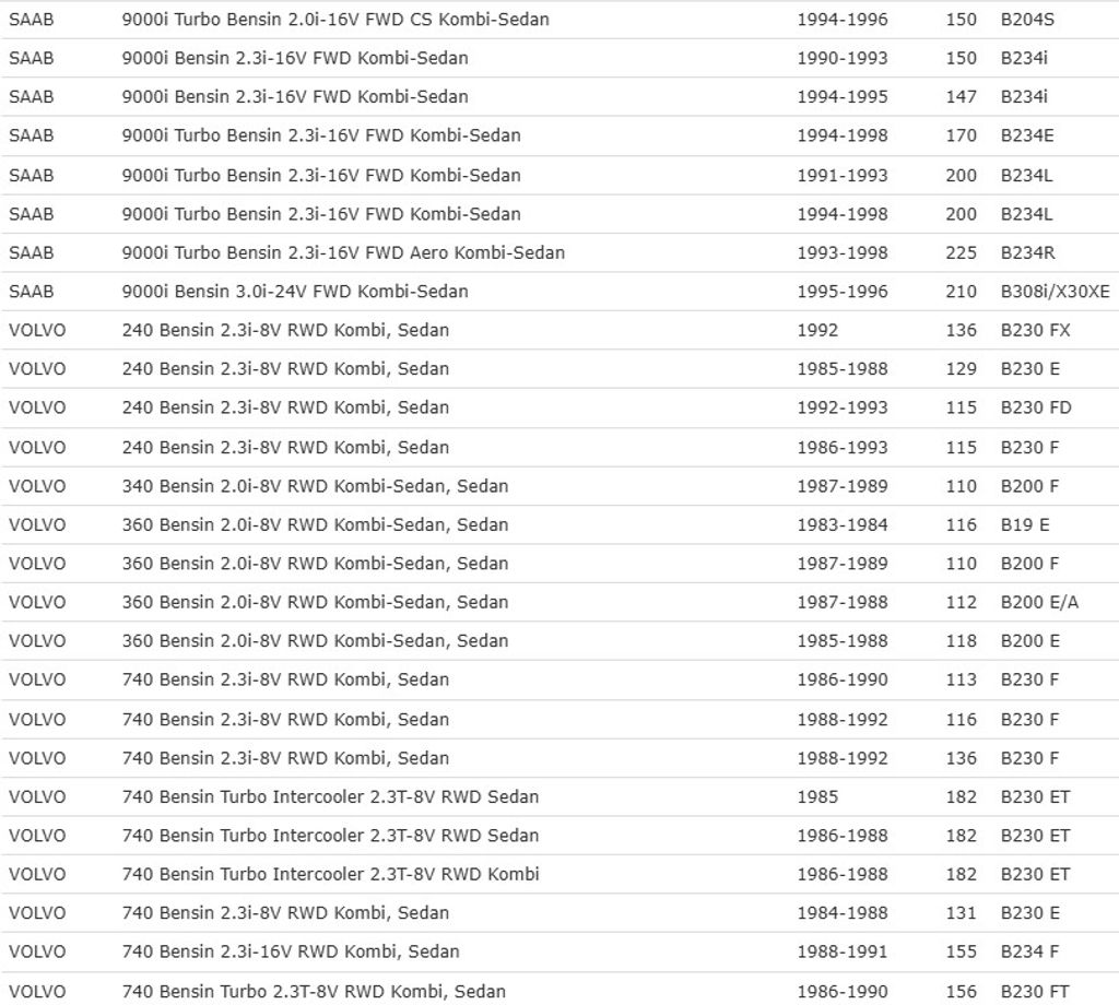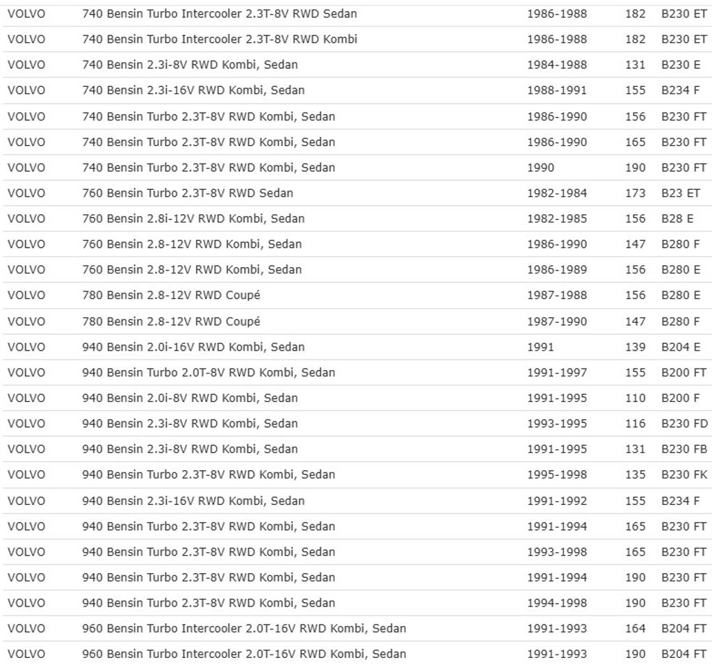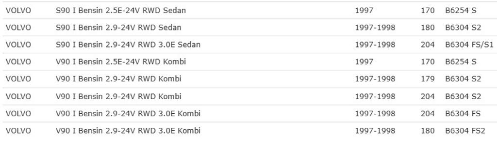 | 960/S90/V90 2.0–3.0 | Bensin | 91–98 |