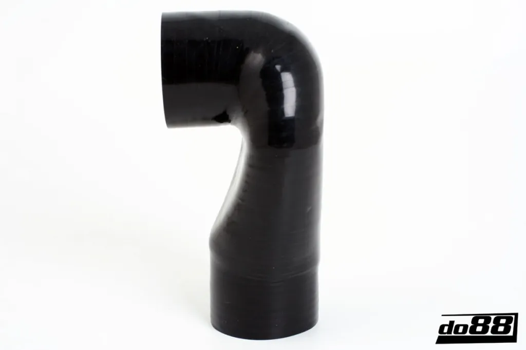Cobra Head Svart 4" (102mm) är en specialdesignad silikonslang framtagen för att ge maximalt luftflöde i mycket trånga installationsutrymmen. Tack vare sin platta, aerodynamiska form möjliggör den en kompakt montering där en vanlig 90°-silikonslang inte får plats – utan att kompromissa med flödeskapaciteten.