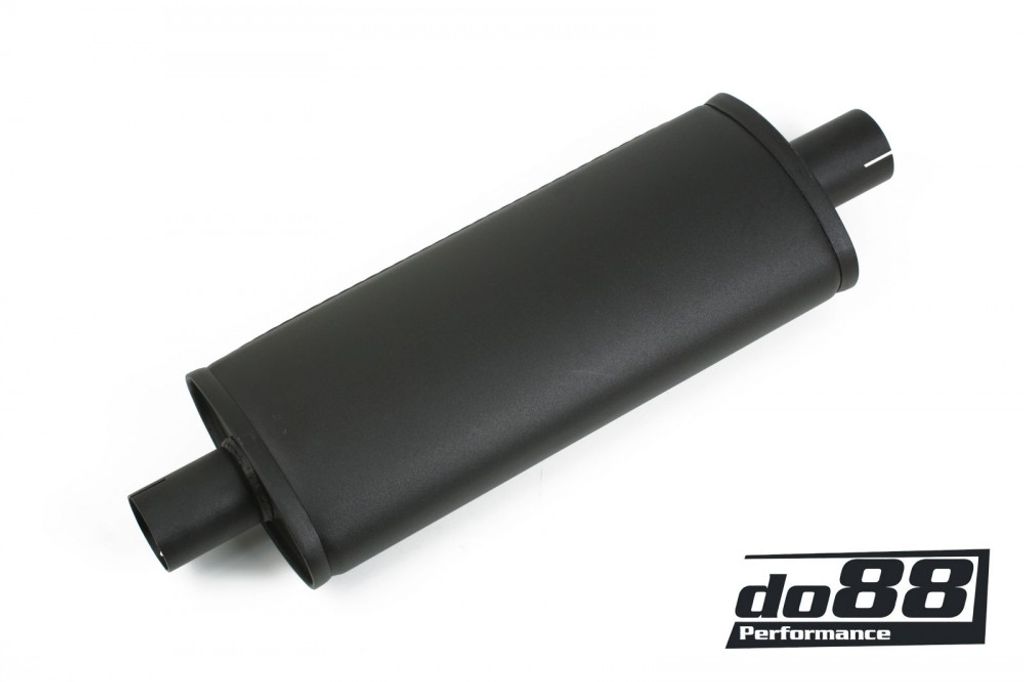 Universalljuddämpare i svartlackerat aluminiserat stål med 2" (51 mm) anslutning. En robust och effektiv ljuddämpare för anpassade avgassystem där god ljudreduktion och fritt flöde är viktigt.