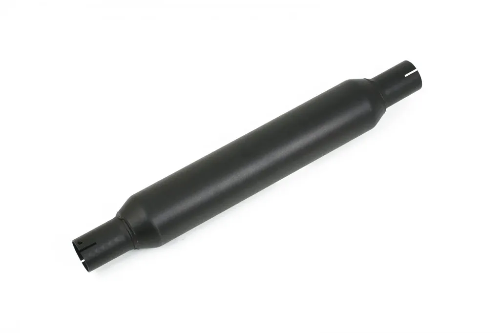 Ljuddämpare i svartlackerat aluminiserat stål med 1,75" (45 mm) anslutningar. En kompakt universaldämpare byggd enligt absorptionsprincipen för effektiv ljuddämpning med minimalt mottryck. Passar perfekt i trånga utrymmen där utrymme är begränsat, utan att kompromissa med prestanda eller ljudnivå.