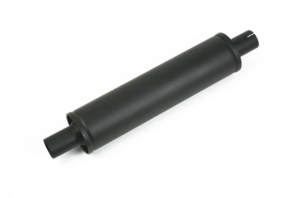 ljuddämpare stål, midi ljuddämpare, universaldämpare 45mm, avgassystem dämpare, sportljuddämpare, racingljuddämpare, svartlackerad dämpare, absorptionsljuddämpare