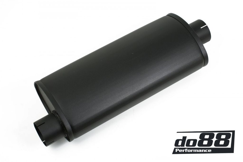 Universalljuddämpare i svartlackerat aluminiserat stål som ger effektiv ljudreducering utan att påverka motorns prestanda. Perfekt för dig som bygger eller modifierar avgassystem med fokus på flöde och hållbarhet.