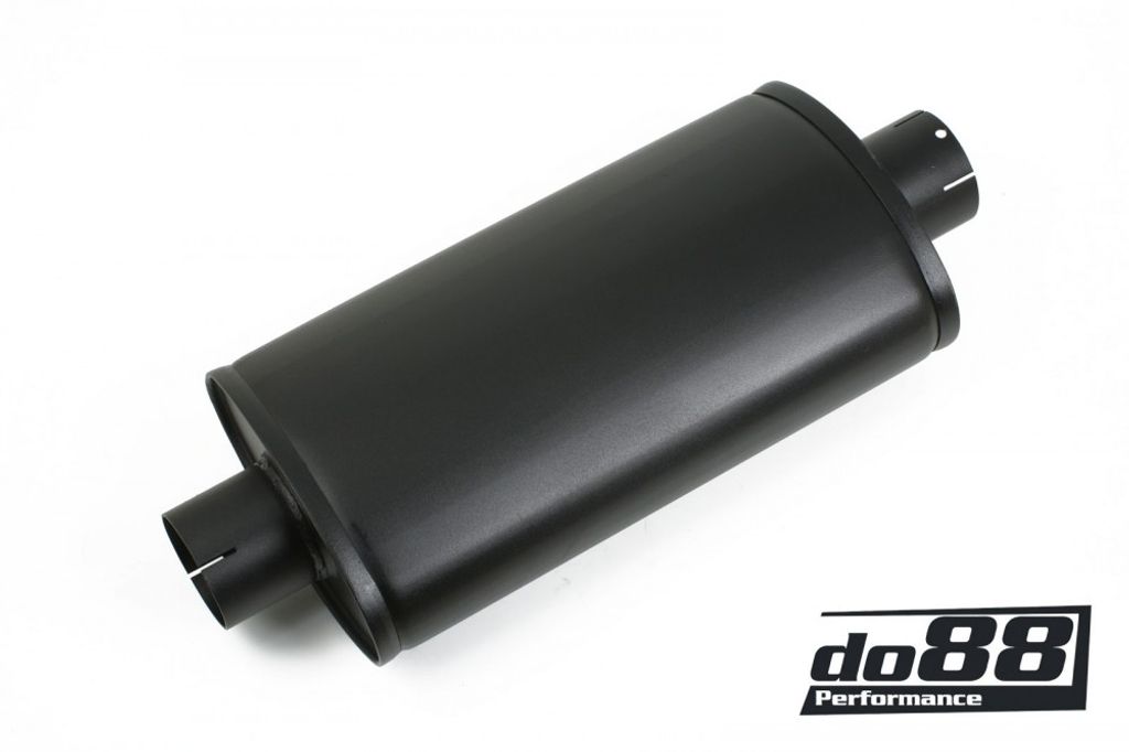 Universalljuddämpare i svartlackerat aluminiserat stål med 3" (76 mm) anslutning. En kompakt och effektiv ljuddämpare för anpassade avgassystem där låg motståndsnivå och hög hållbarhet är avgörande.