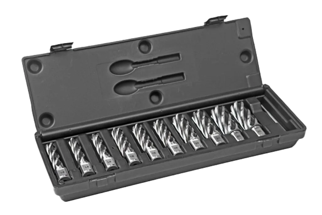 EUROBOOR Kärnborrsats 12–30 mm (HCL.KIT/10) innehåller tio borr i de vanligaste dimensionerna från 12 till 30 mm samt en pilotpinne. Borrarna är tillverkade i slitstarkt HSS för hög precision, lång livslängd och effektiv spånavgång. Med Weldon 19 mm-fäste är satsen kompatibel med magnetborrmaskiner och anpassad för krävande industriella miljöer.