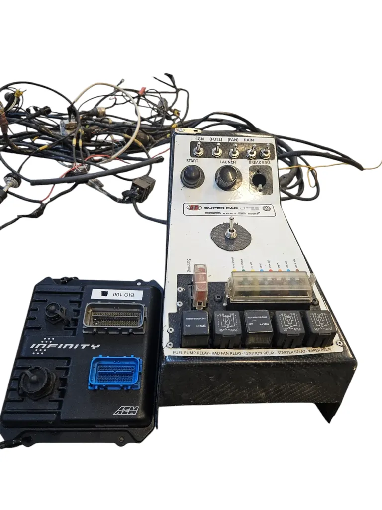 - Kablage: Komplett motorsportskablage och kolfiberbrytarpanel