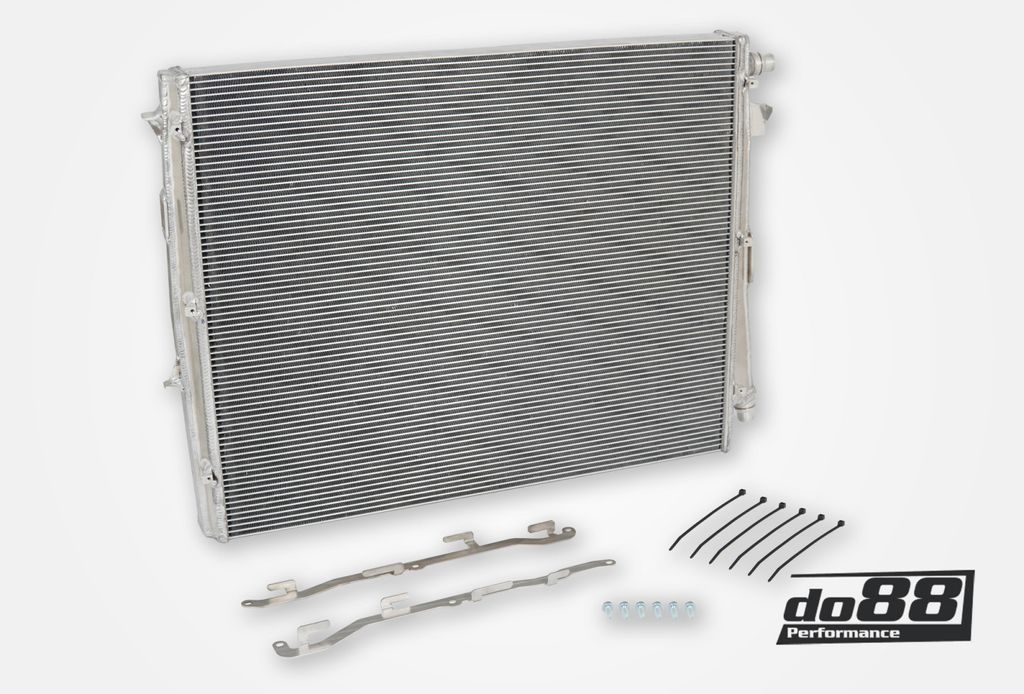 B58-motorn har, likt S55-motorn i F80 M3/M4, en vatten-till-luft laddluftkylare kopplad till ett separat kylsystem med en värmeväxlare i bilens front. Ett vanligt problem med trimmade B58-motorer är att laddluftkylaren snabbt drabbas av ”heat soak” vid bankörning eller hård gatkörning. Höga insugstemperaturer gör att styrsystemet reducerar effekten eller går i limp mode. Denna uppgraderade front IC vattenkylare är designad för att drastiskt öka kylkapaciteten och därmed hålla insugstemperaturen under kontroll.