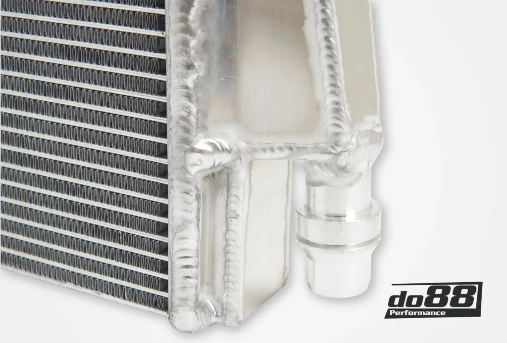 S58-motorn använder ett vatten-till-luft laddluftkylningssystem med en värmeväxlare placerad i fronten. Vid trimning eller bankörning kan originalsystemet snabbt drabbas av heat soak, vilket leder till högre insugstemperaturer, effektminskning och i värsta fall limp-mode. Denna uppgraderade vattenkylare eliminerar problemen genom att ge markant förbättrad kylkapacitet och tillförlitlighet.