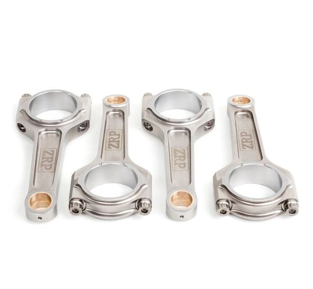 ZRP vevstakar klarar mer än 200HK per cylinder. Vägda med max 1g i viktskillnad per sats .Alla vevstakar CNC bearbetale max tolerans längd 0.001mm max tolerans lagerhus 0.0001mm. Bussningarna är tillverkade i AMCO18 material känd som det absolut bästa kända materialet för bussningar.