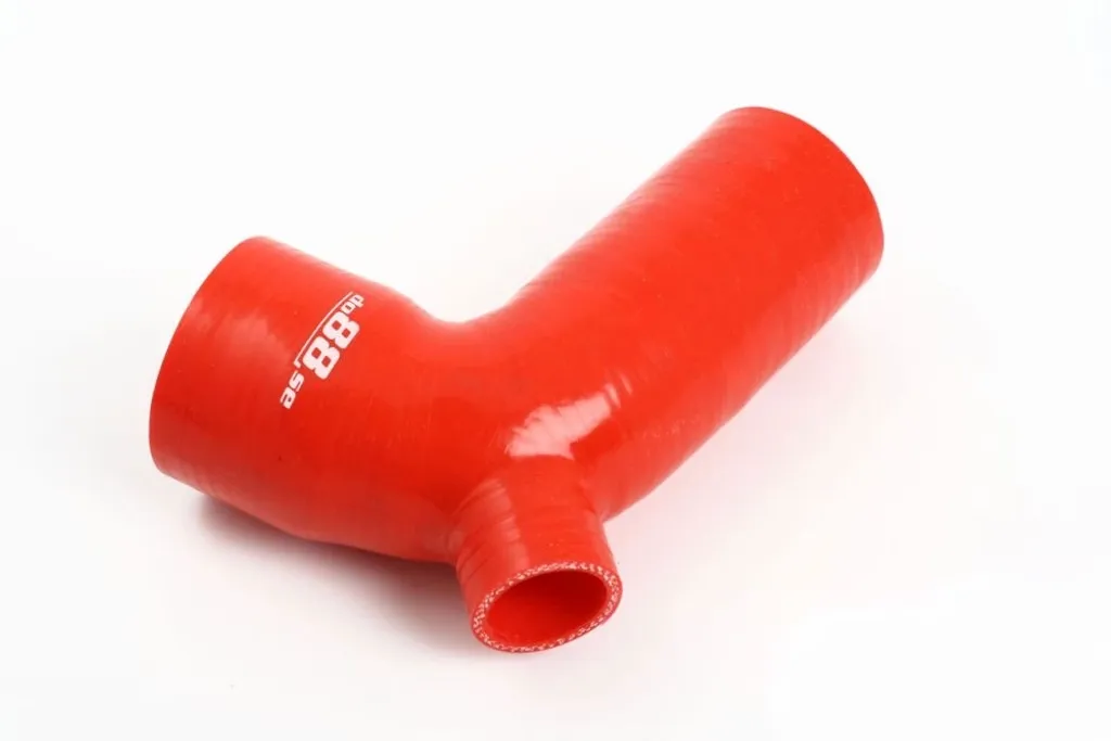 IC Utloppsslang Röd med 25 mm uttag för dumpventil till Volvo 850, S70 och V70 – ett egenutvecklat slangkit från do88 som ersätter original intercooler-utloppsslang. Perfekt för dig som vill montera en extern dumpventil med professionell passform och pålitlig funktion.