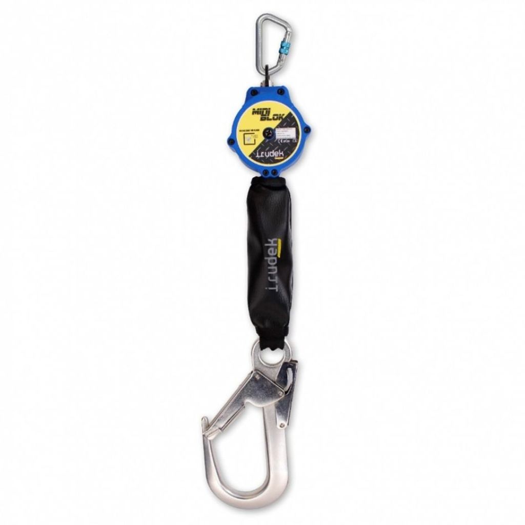 infällbar fallskyddsanordning, technora band, fallskydd 2 meter, energiabsorberare, aluminiumkrok 60 mm, en 360, vg11 11.060, trendab