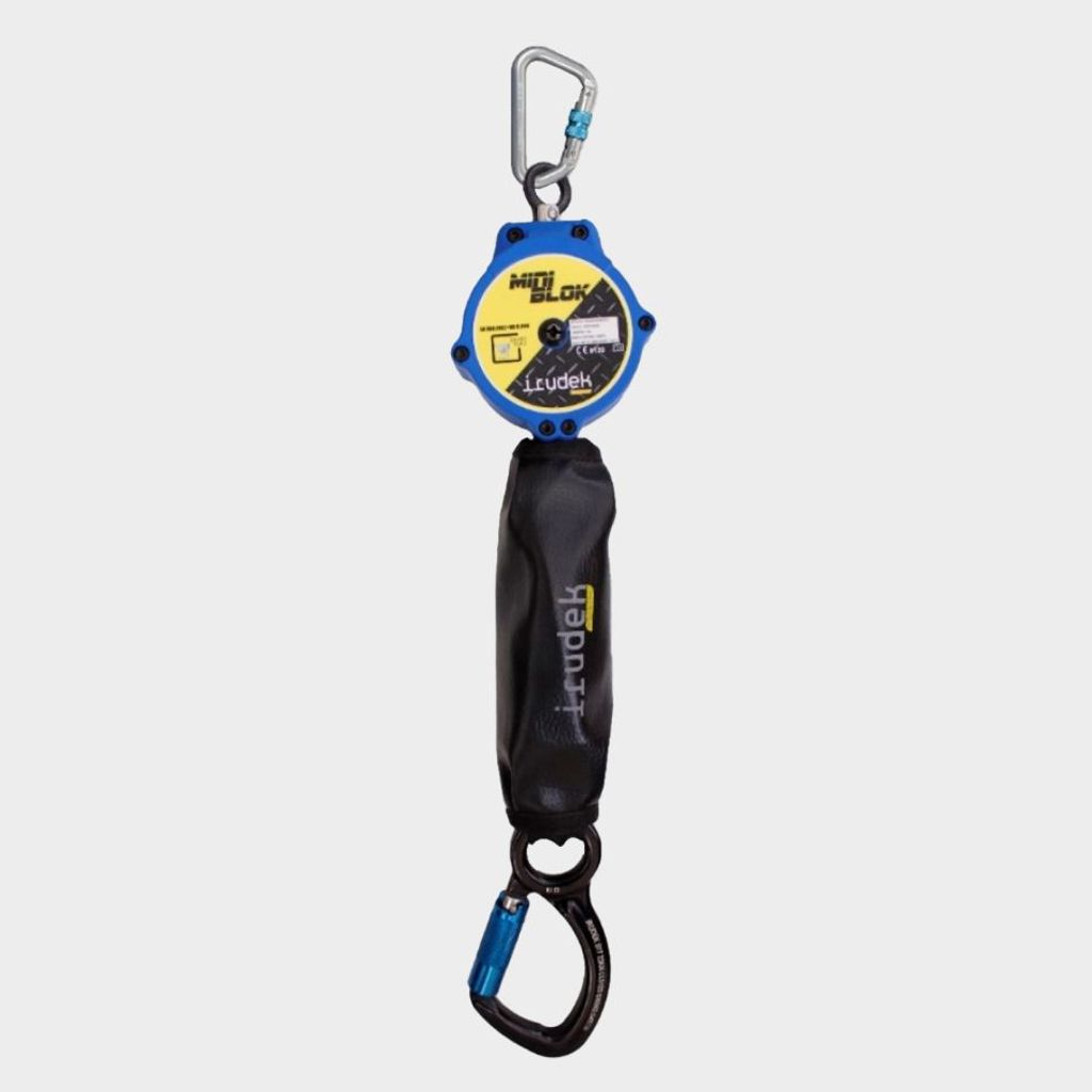 infällbar fallskyddsanordning sekuralt miniblock c, technora band, fallskydd 2 meter, energiabsorberare, aluminiumkoppling, en 360, vg 11.060, professionellt fallskydd, trendab