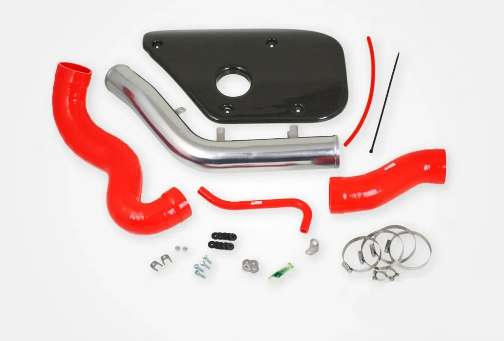Originalröret mellan luftfilter och turboinlopp har en begränsad diameter och en intern resonator som skapar onödigt flödesmotstånd. Detta inloppsrör har en ytterdiameter på 76 mm (3") genom hela längden och en slät invändig yta som minimerar turbulens. Resultatet är ett markant förbättrat luftflöde till turbon, vilket ger snabbare gasrespons, bättre motoreffektivitet och högre prestanda. Röret är tillverkat av extruderat aluminium som dornbockats i ett stycke för optimal passform och hållbarhet. De medföljande silikonslangarna är tillverkade med fyra lager polyesterarmering och invändig stålwire för maximal styrka, värmetålighet och livslängd.