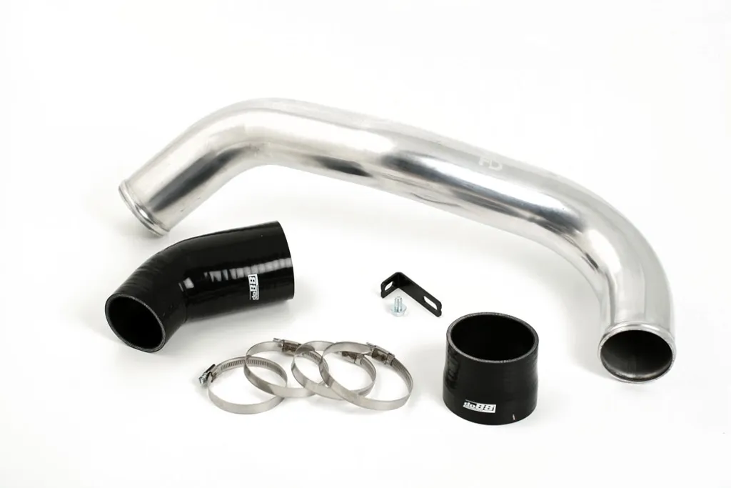 Originalröret mellan luftfilter och turboinlopp har en innerdiameter på endast 56 mm vid smalaste punkten och innehåller dessutom en resonatorslang som begränsar luftflödet. Detta inloppsrör har 76 mm (3") ytterdiameter hela vägen och en slät invändig yta som minimerar turbulens. Resultatet är ett kraftigt förbättrat luftflöde till turbon, vilket bidrar till stabilare laddtryck och bättre effektutveckling vid både standard och modifierade motorer. Röret är tillverkat av extruderat aluminium som bockats i ett stycke för optimal passform och hållbarhet.