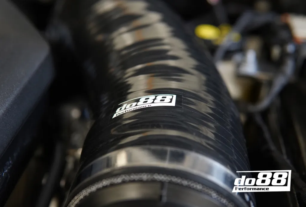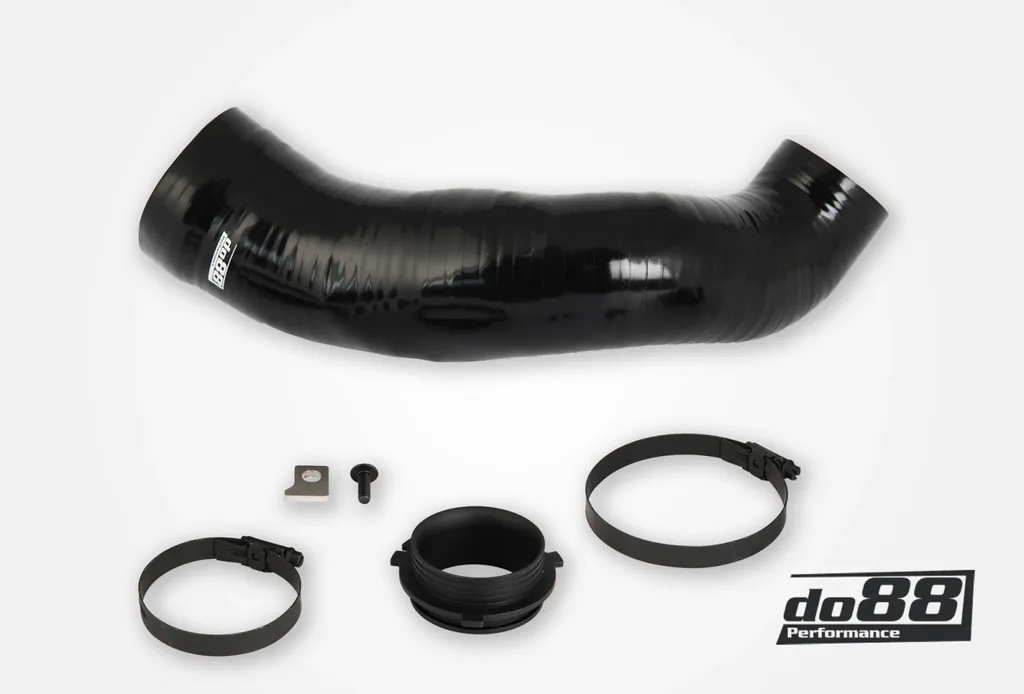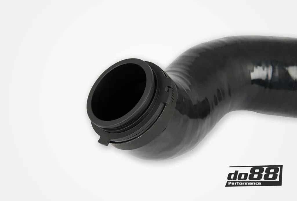 Inloppsslang Svart i silikon till VAG 2.0 TSI EA888 Gen4 (245 hk). En högflödesslang med drop-in passform som förbättrar luftflödet till turbon, minskar undertryck och ger snabbare turbosvar.