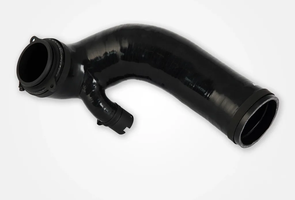 Slangen är tillverkad med 3D-friformsdesign i högsta kvalitet och levereras med CNC-bearbetad adapter för exakt passform mot turbons inlopp. Den erbjuder upp till 26 % högre luftflöde jämfört med originalkomponenten (873 CFM vid 0,1 bar tryckfall – original 693 CFM). Resultatet blir snabbare respons, effektivare turboladdning och bättre effektuttag.
