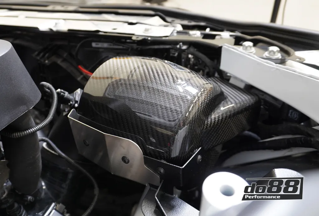 Detta slutna system säkerställer att motorn endast får kall, syrerik luft genom en noggrant avskärmad luftburk med integrerat värmeskydd. Genom att eliminera påverkan från varmluft nära grenröret minimeras insugstemperaturen, vilket förbättrar motorns effektivitet och effekt. Systemet inkluderar ett stort 102 mm aluminiumrör med optimerad flödesväg och en specialanpassad silikonslang för perfekt passform och tätning.
