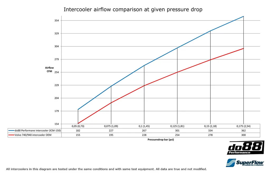 Högpresterande intercooler för Volvo 740 och 940 Turbo (92–98) som ersätter originalkylaren och ger kraftigt förbättrad kylförmåga, högre effekt och ökad driftsäkerhet. Designad för enkel montering med endast mindre justeringar av originalfästen.