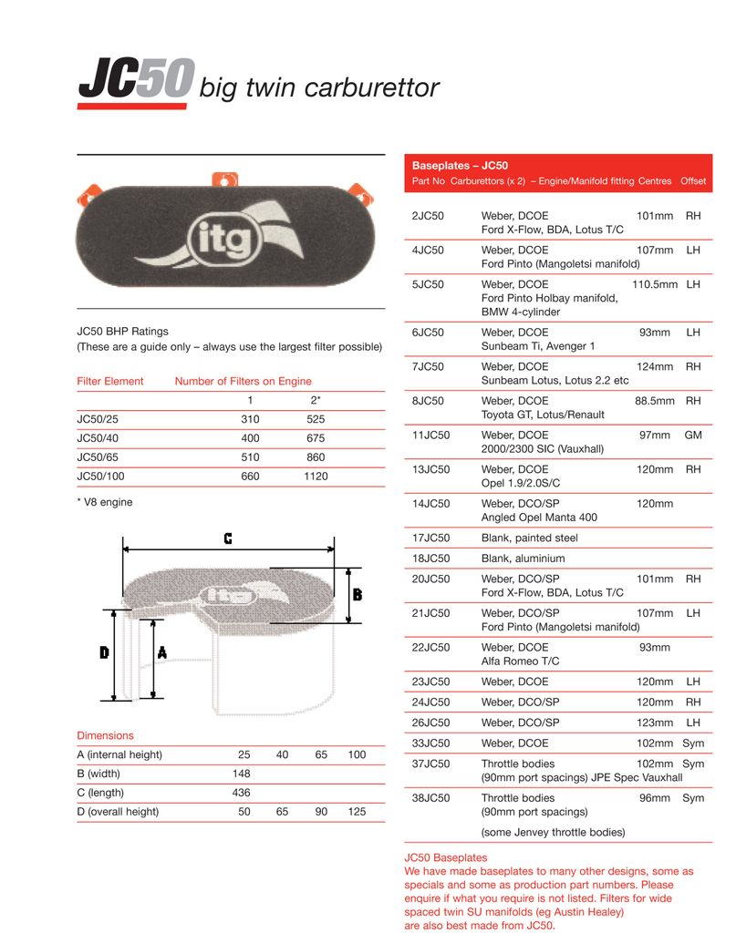 ITG JC50 basplattan är konstruerad för att säkerställa en pålitlig och hållbar installation av JC50-seriens skumluftfilter. Den slitstarka stålkonstruktionen med pulverlackering ger skydd mot korrosion och slitage, medan clipsen möjliggör en snabb och enkel montering. Med sin exakta passform är den ett givet val för dubbla förgasare i prestanda- och racingapplikationer.