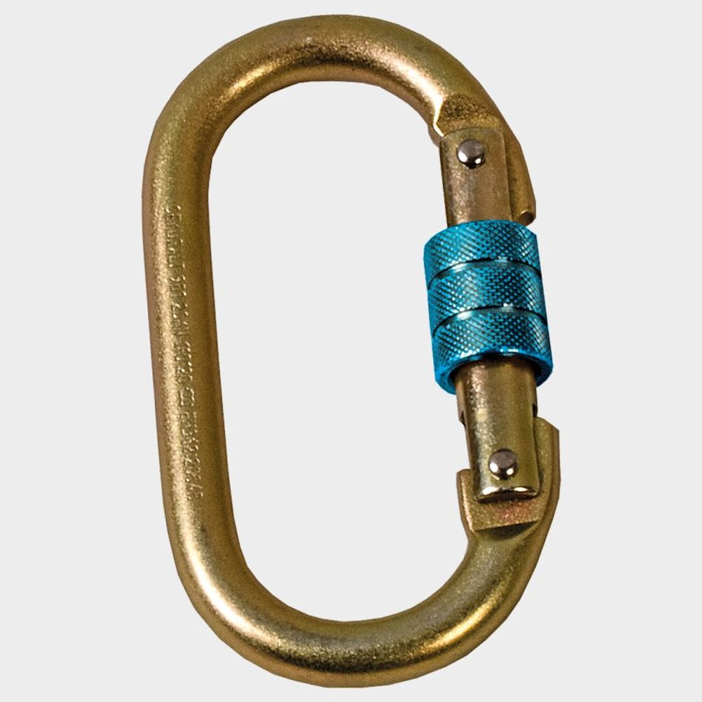 Robust och säker stålkoppling utrustad med skruvlås för pålitlig förankring i krävande arbetsmiljöer. Öppningen på 17 mm gör den lämplig för ett brett användningsområde inom fallskydds- och säkerhetssystem.