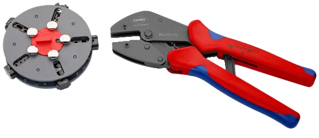 KNIPEX 97 33 02 MultiCrimp® är den smarta lösningen för professionell crimpning – med maximal flexibilitet och alltid rätt back nära till hands.