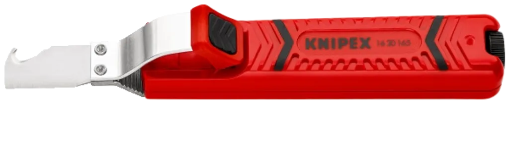 KNIPEX Avmantlingsverktyg med skalpellblad är ett professionellt och flexibelt verktyg för exakt avmantling av rundkablar med diameter mellan 8 och 28 mm.