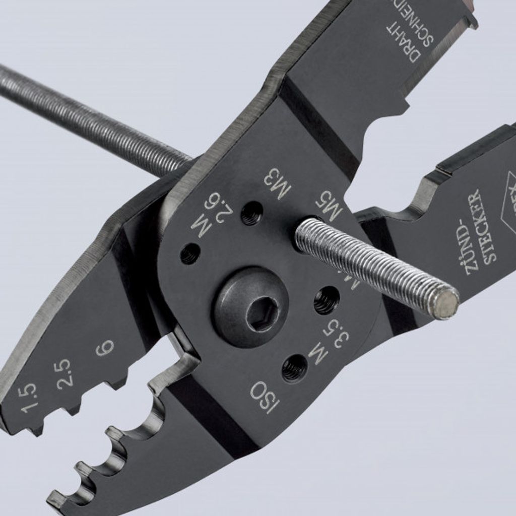 KNIPEX 97 21 215 C är konstruerad för att ge hög funktionalitet och lång livslängd. Med kapacitet upp till 6 mm², tre crimppositioner och integrerade gängskär för Cu- och Ms-skruvar blir detta ett komplett verktyg för både verkstad och fältarbete. Den skruvade leden säkerställer jämn rörelse och stabil användning vid dagligt arbete.