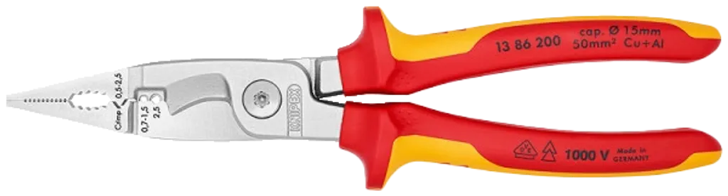 KNIPEX elinstallationstång, VDE-godkänd tång, multifunktionstång 200 mm, 6-i-1 verktyg elinstallation, KNIPEX installationstång, professionell elektriker tång