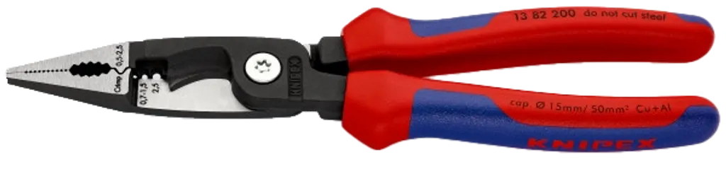 KNIPEX elinstallationstång, 6-i-1 tång, multifunktionstång 200 mm, installationstång flerkomponentsgrepp, KNIPEX kabeltång, elektriker tång