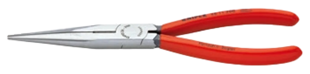 KNIPEX Flacktång 200 mm SB är en robust och rak precisionsflacktång med flata, runda och spetsiga käftar – utrustad med elastiska spetsar och induktionshärdade skär för effektivt grepp- och kaparbete på både mjuk, medelhård och hård tråd.