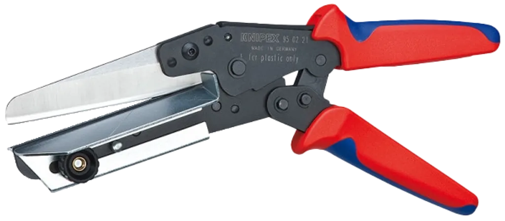 KNIPEX 95 02 21 är en specialutvecklad kabelkanalsax för snabb, exakt och sprickfri kapning av plastkanaler och kabelrännor upp till 4 mm materialtjocklek.