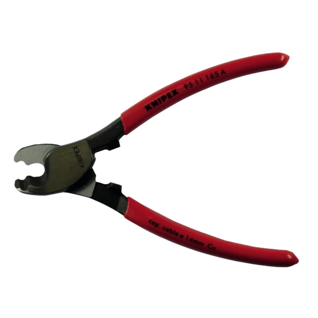 KNIPEX Kabelsax 165 mm Skandinavien är en robust kabelsax utvecklad för exakta och rena snitt i koppar- och aluminiumkablar upp till 50 mm² – utan deformation.