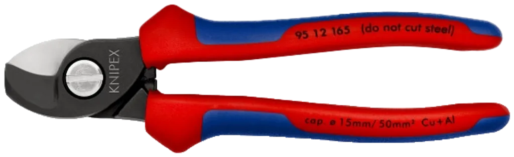 KNIPEX 95 12 165 är en kompakt enhandskabelsax som klipper flertrådig koppar- och aluminiumkabel upp till 50 mm² med precision och enkelhet.