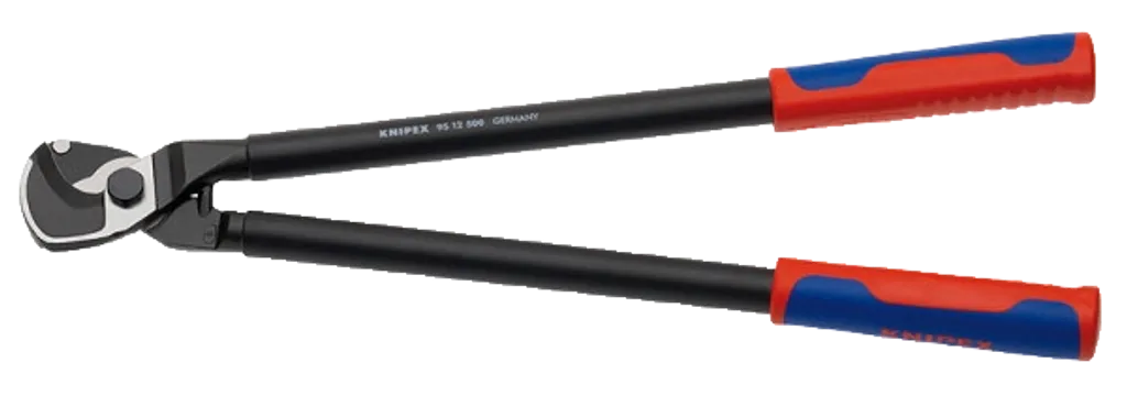 KNIPEX 95 12 500 är en kompakt och kraftfull kabelsax med hög utväxling – utvecklad för exakta snitt i koppar- och aluminiumkablar upp till 150 mm².