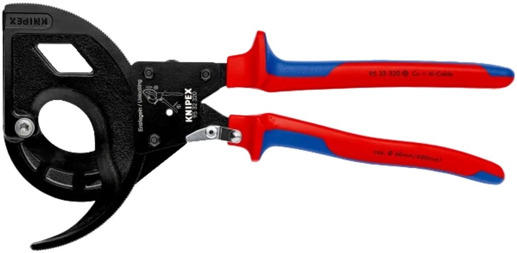 KNIPEX kabelsax, KNIPEX 95 32 320, kabelsax 600 mm², kompakt kabelsax, kabelsax med kuggkrans, professionell kabelsax