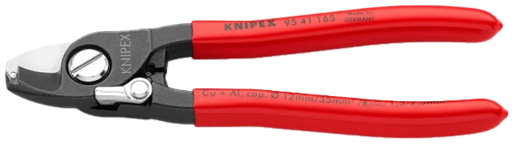 KNIPEX 95 41 165 är en kompakt kabelsax för koppar- och aluminiumkablar – med integrerad avisoleringsfunktion för EKLK-kabel.